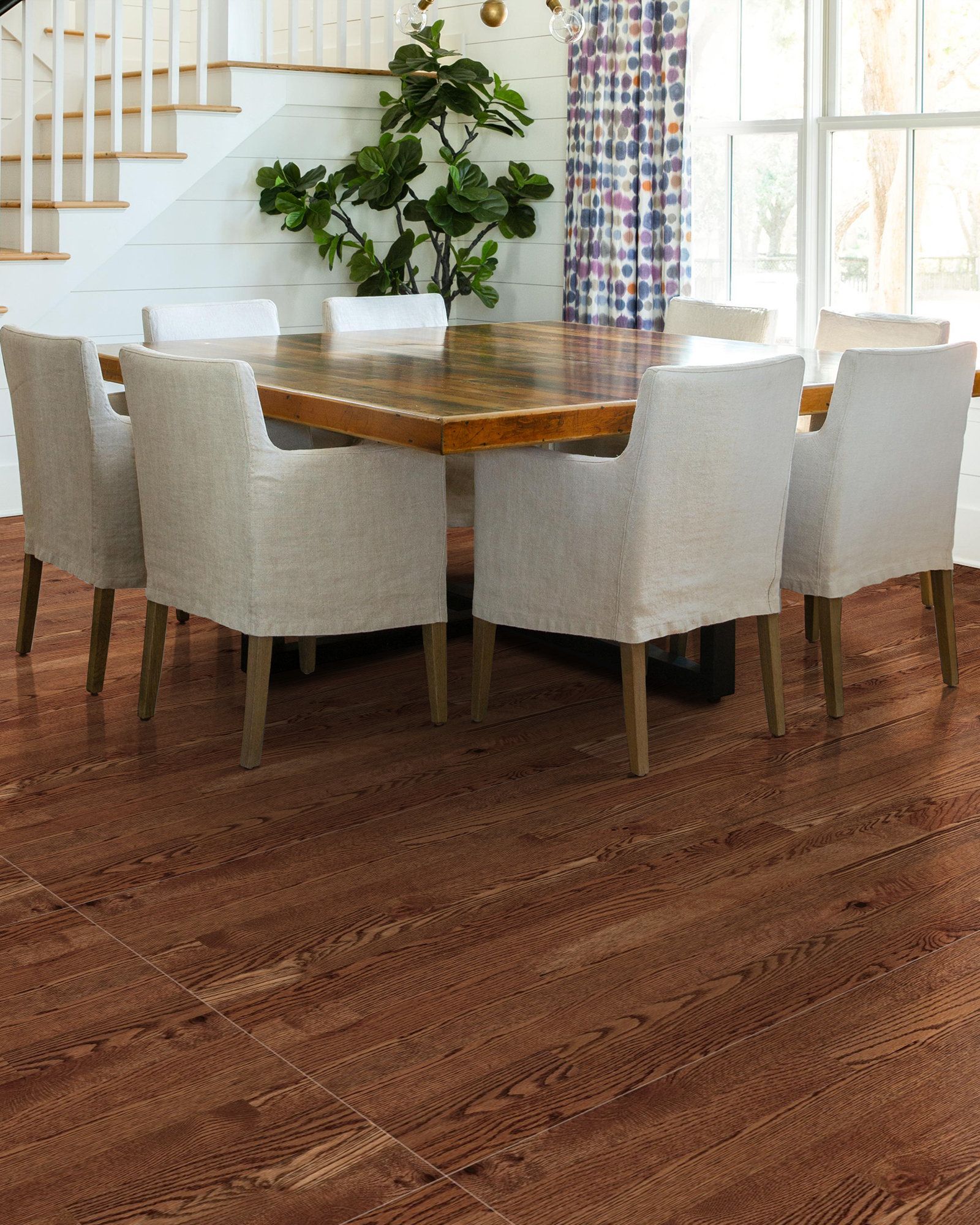 | Description | The Shaw Lineage Red Oak 3" Saddle Hardwood Collection features engineered hardwood planks made from red oak. It has a smooth surface texture, UV Aluminum Oxide finish and micro bevel edges. It can be installed using nails, staples, glue or floating and has a 50 Year Residential Warranty. |