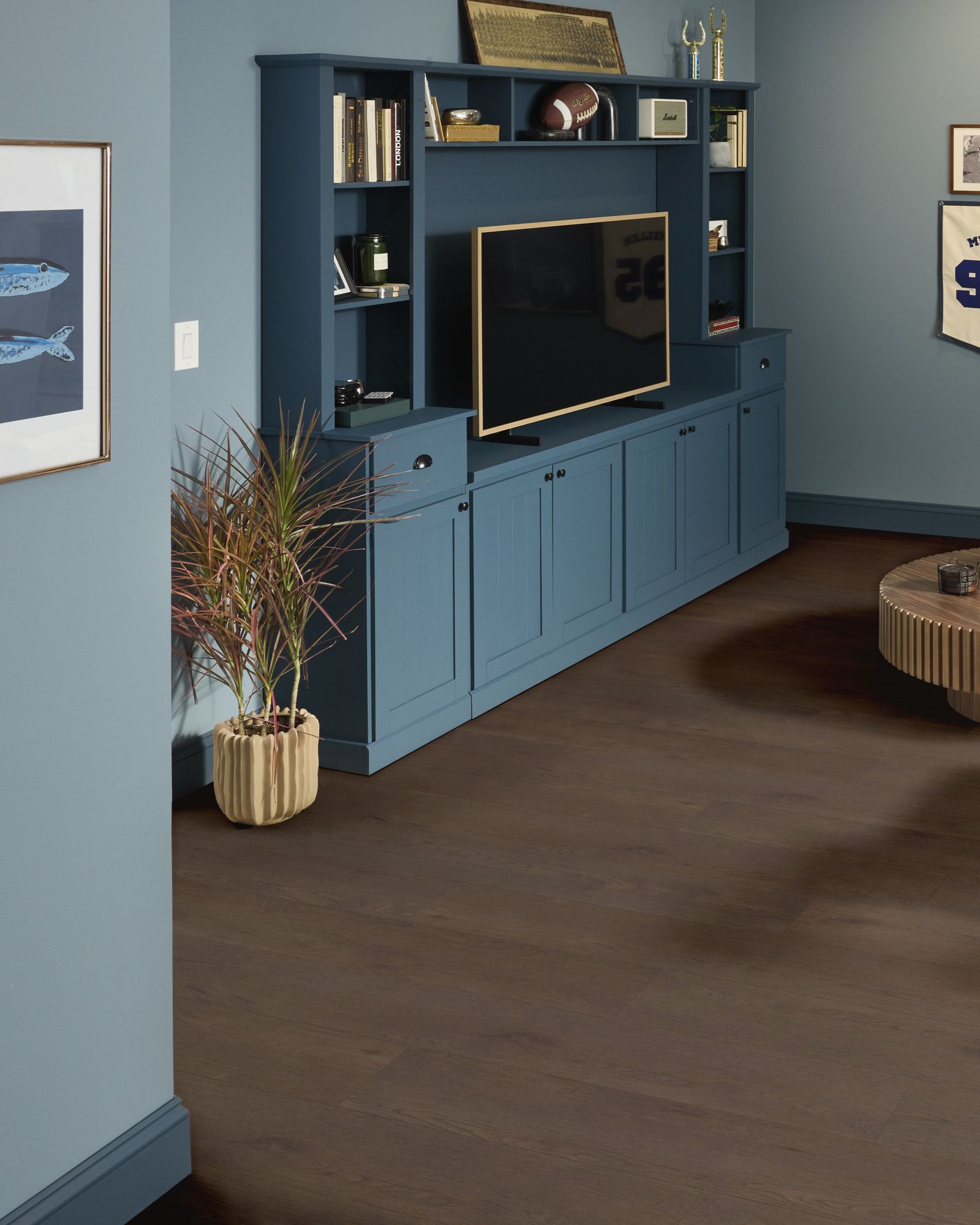 Step into lasting comfort and style with the Shaw Homeward Midnight Mocha 9"x60" Luxury Vinyl Tile Residential Resilient LVT Loose Lay flooring. Designed in 9in x 60in wide planks, this luxury vinyl flooring combines modern hardwood looks with the everyday performance of resilient vinyl. Built with a 5mm overall thickness and a 20 mil wear layer, Homeward offers excellent protection against scratches, stains, and daily wear with its ScuffResist finish. The accent bevel edges add realistic dimension, while the innovative loose lay installation makes setup quick and simple - no glue required. Backed by a lifetime residential warranty, Homeward flooring is waterproof, easy to maintain, and built to bring timeless durability and beauty into your home.