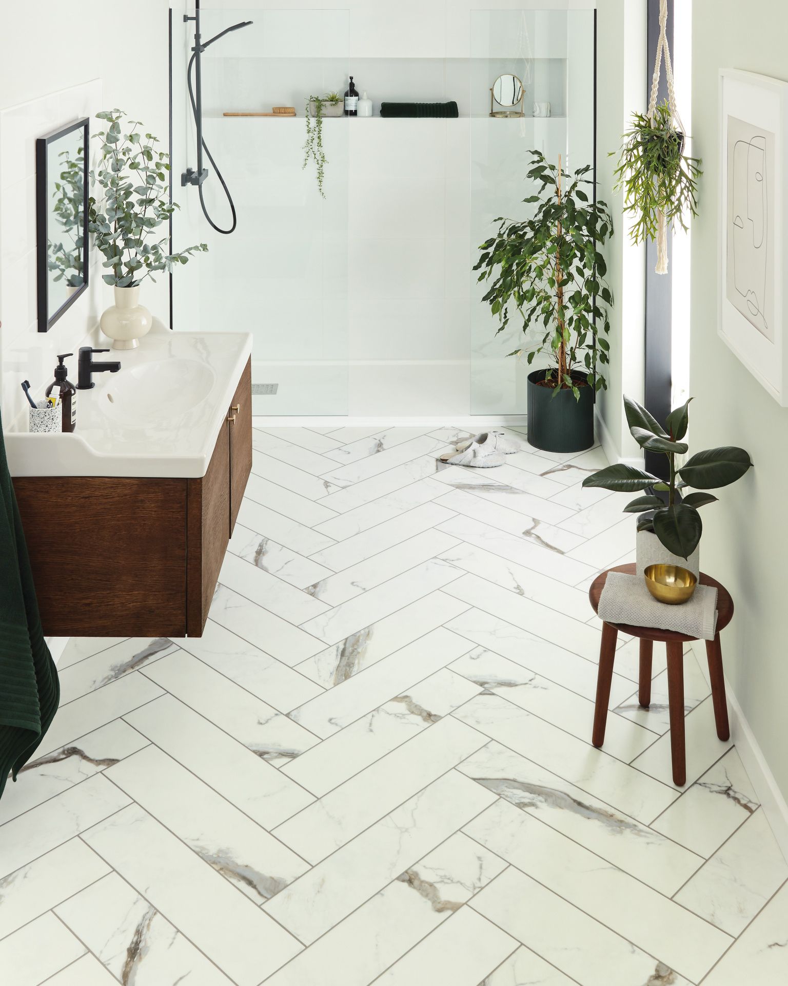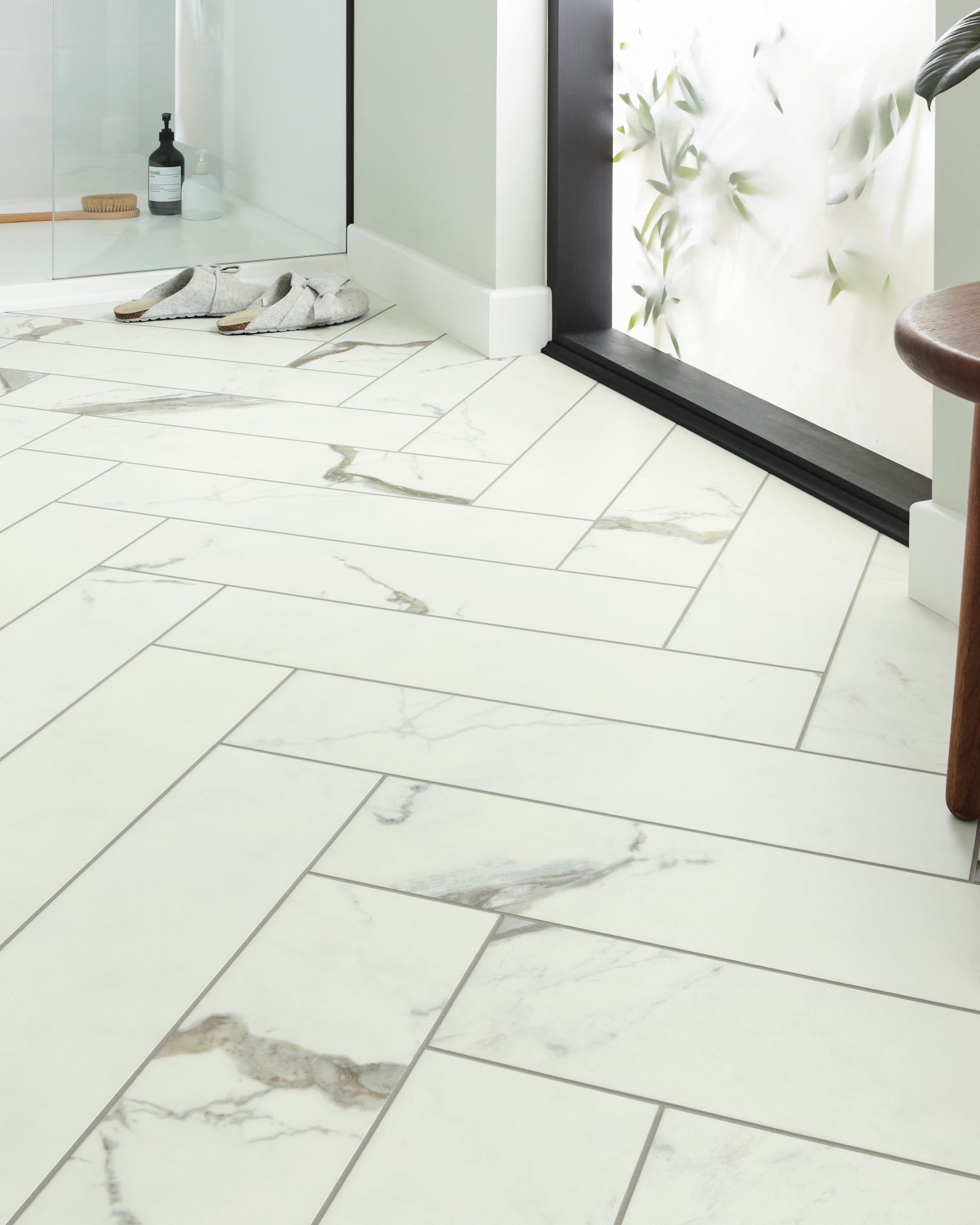 | Description | The Karndean Korlok Select Brunella Marble Herringbone Luxury Vinyl Collection features a crisp white Calacatta marble design with thick veining in shades of golden brown and taupe. Featuring stain-free, shale-colored InteGrout and designed specifically to be laid in a herringbone pattern, Brunella Marble will create a lasting impression in your kitchen, bedroom, dining room or entrance hall. |