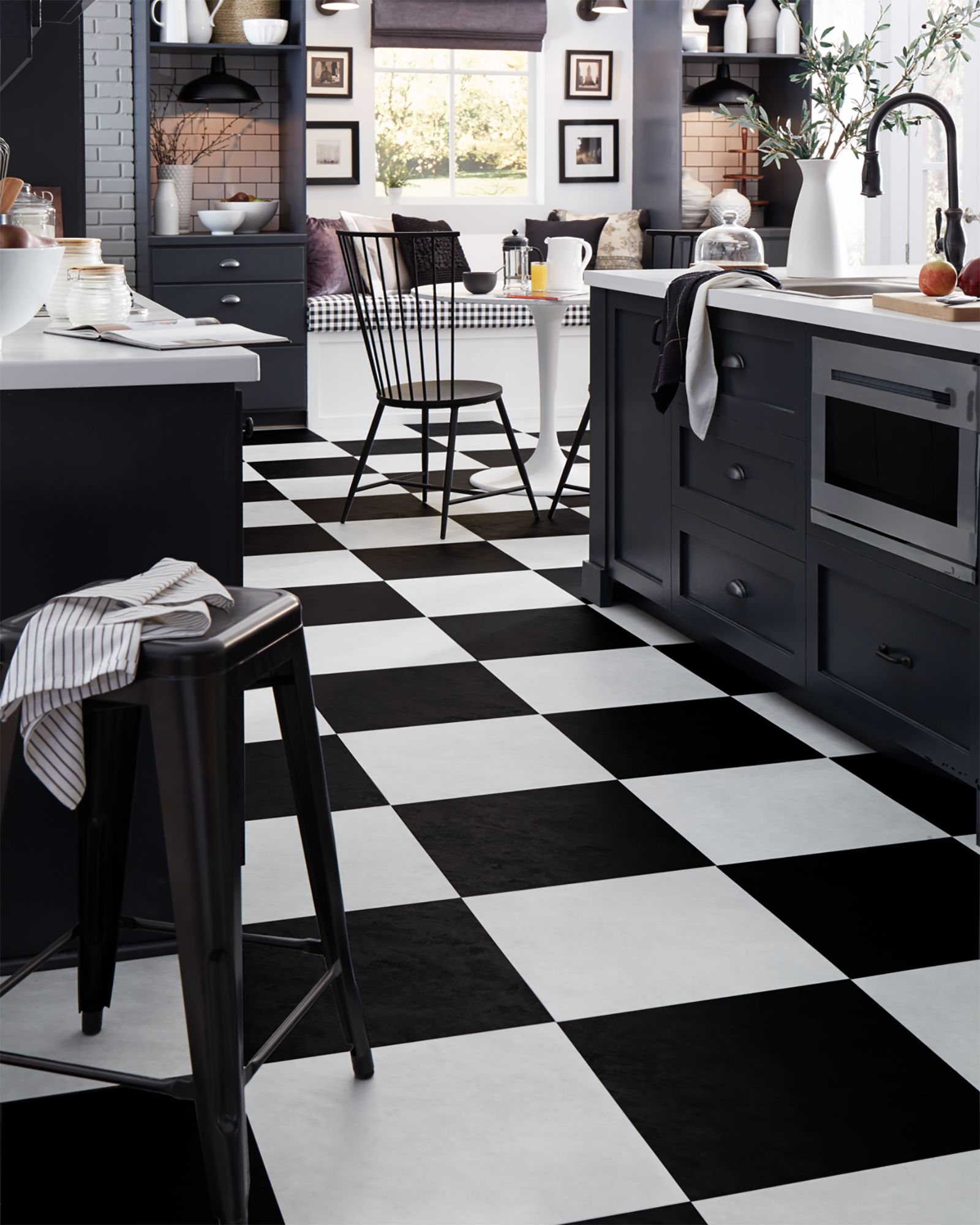 The Mannington Adura Flex Tile Villa Coal Collection features a beautifully brushed weathered concrete surface that pulls simple traditions from the past and replaces them with a streamlined visual that is both modern and sophisticated. The waterproof Villa luxury vinyl tiles are versatile and can be installed individually as a solid color, combined as a checkerboard, or use all three colors together creating a custom look that is truly original. It's easy to clean, kid and pet friendly, and comes with a Lifetime Residential Warranty.