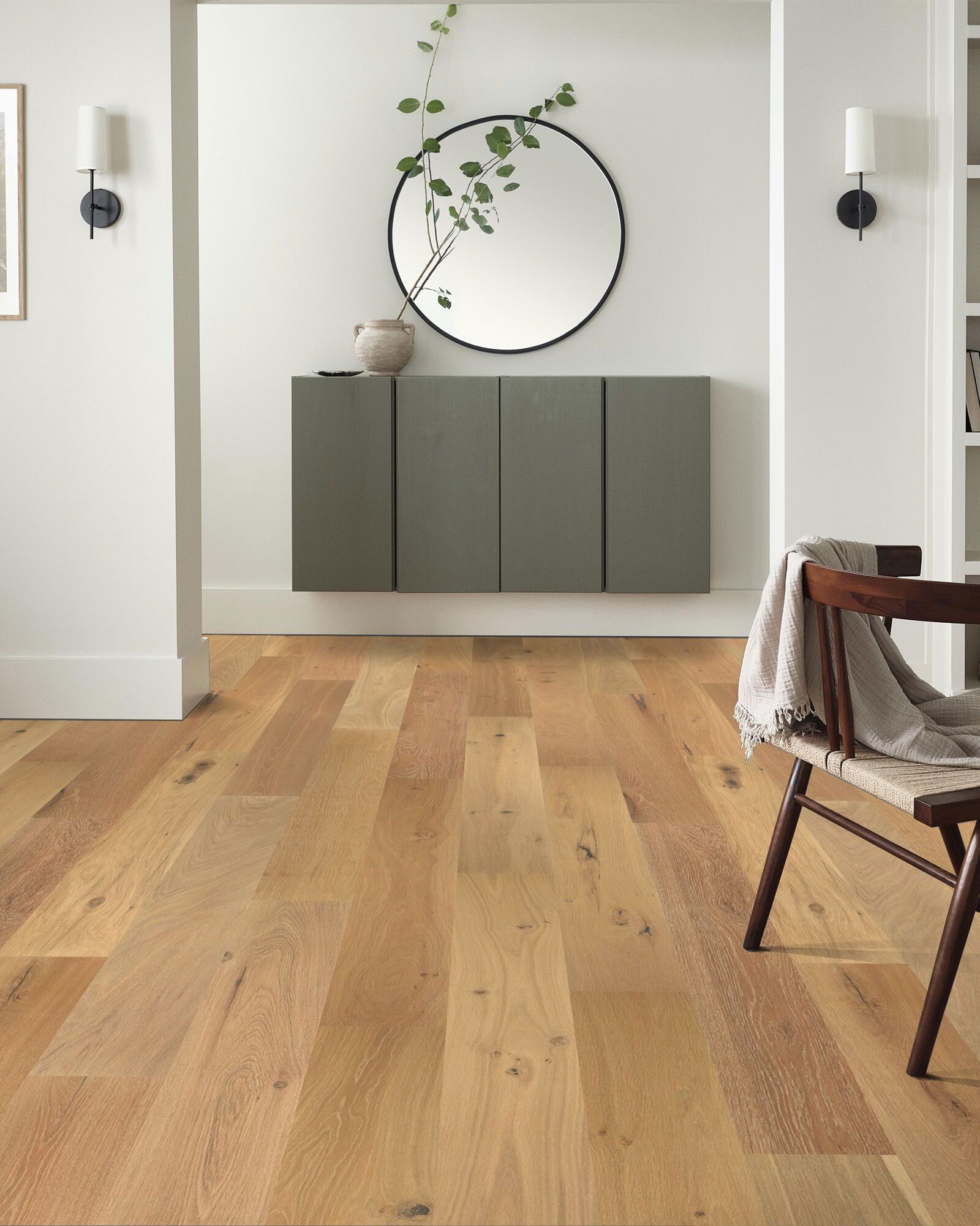 | Description | A raw finish brings forth the indigenous beauty of this white oak’s natural knots and grains. The Anderson Tuftex AA827 Natural Timbers Thicket Smooth Hardwood Collection features a smooth engineered hardwood from White Oak. It has a UV Aluminum Oxide finish and micro bevel edges. It can be installed on any level using a variety of easy to install methods like floating, glue or nail. Finished with a 50 year residential warranty. |