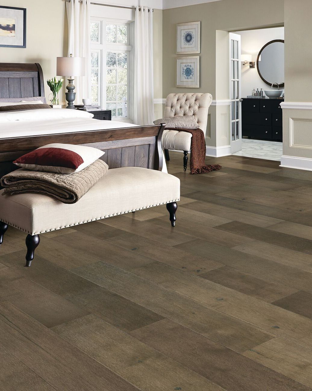 | Description | The Robbins Nature's Canvas Gold Smokey Note Collection features wide engineered hardwood planks with a wire brushed surface texture for a rustic look. The low gloss finish of nano aluminum oxide hides dents and scratches better than high gloss flooring meaning they require less maintenance in high-traffic areas. It also highlights the wood's natural character and offers a layer of built-in protection. This collection comes complete with a 50 year residential warranty. |
