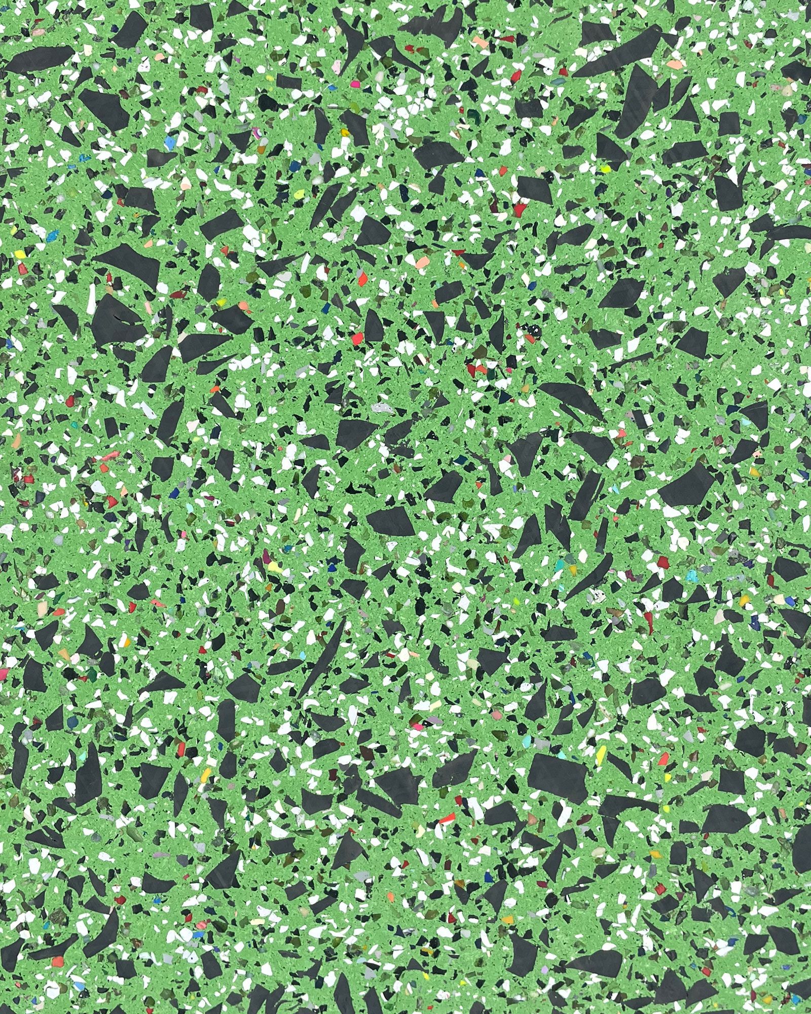 The Hero Rubber + Nike Grind Dunk Chlorophyll Collection delivers high performance materials with recycled rubber made from post-consumer athletic shoes. It has a 20% construction made from Nike Grind and is crafted without recycled tires or crumb rubber, making it a super clean product. This rubber flooring is approved for areas with free weights when using 8mm thickness or greater. It's available in square tiles and interlocking tiles.