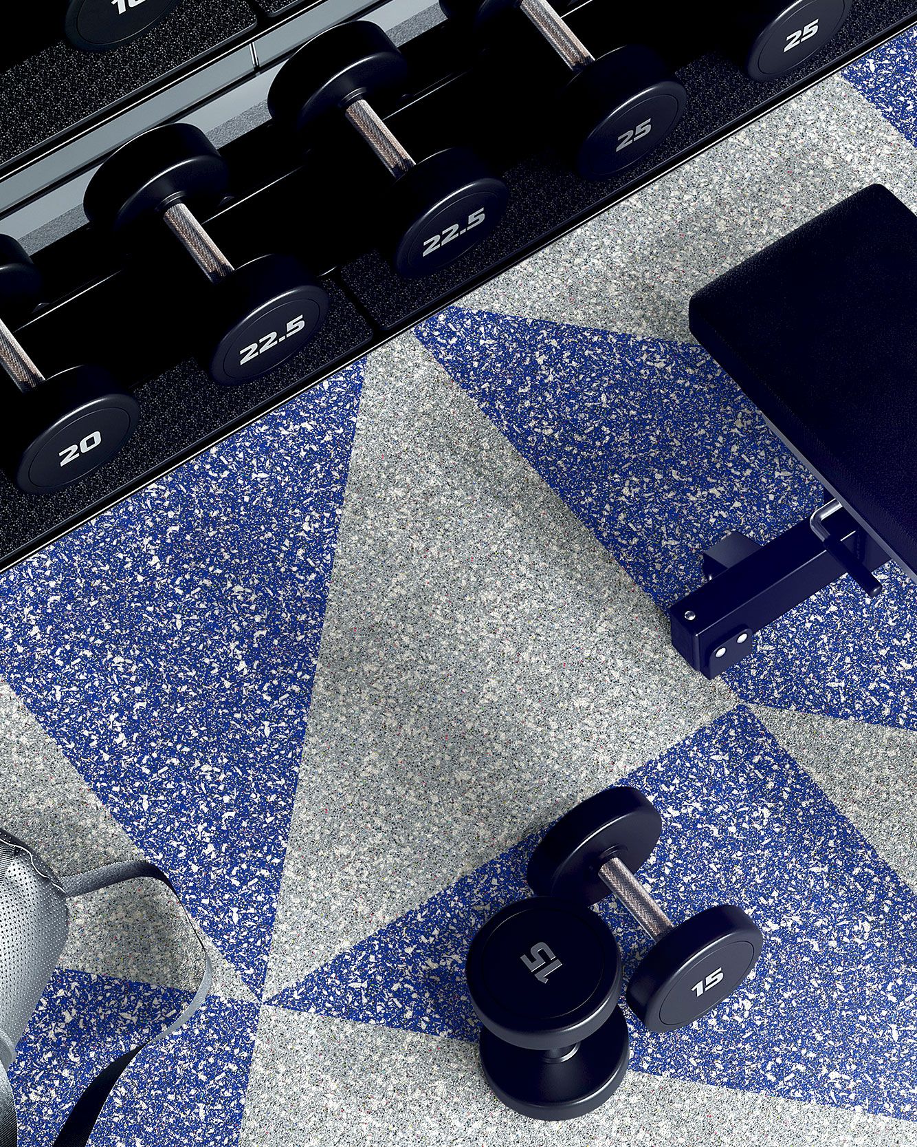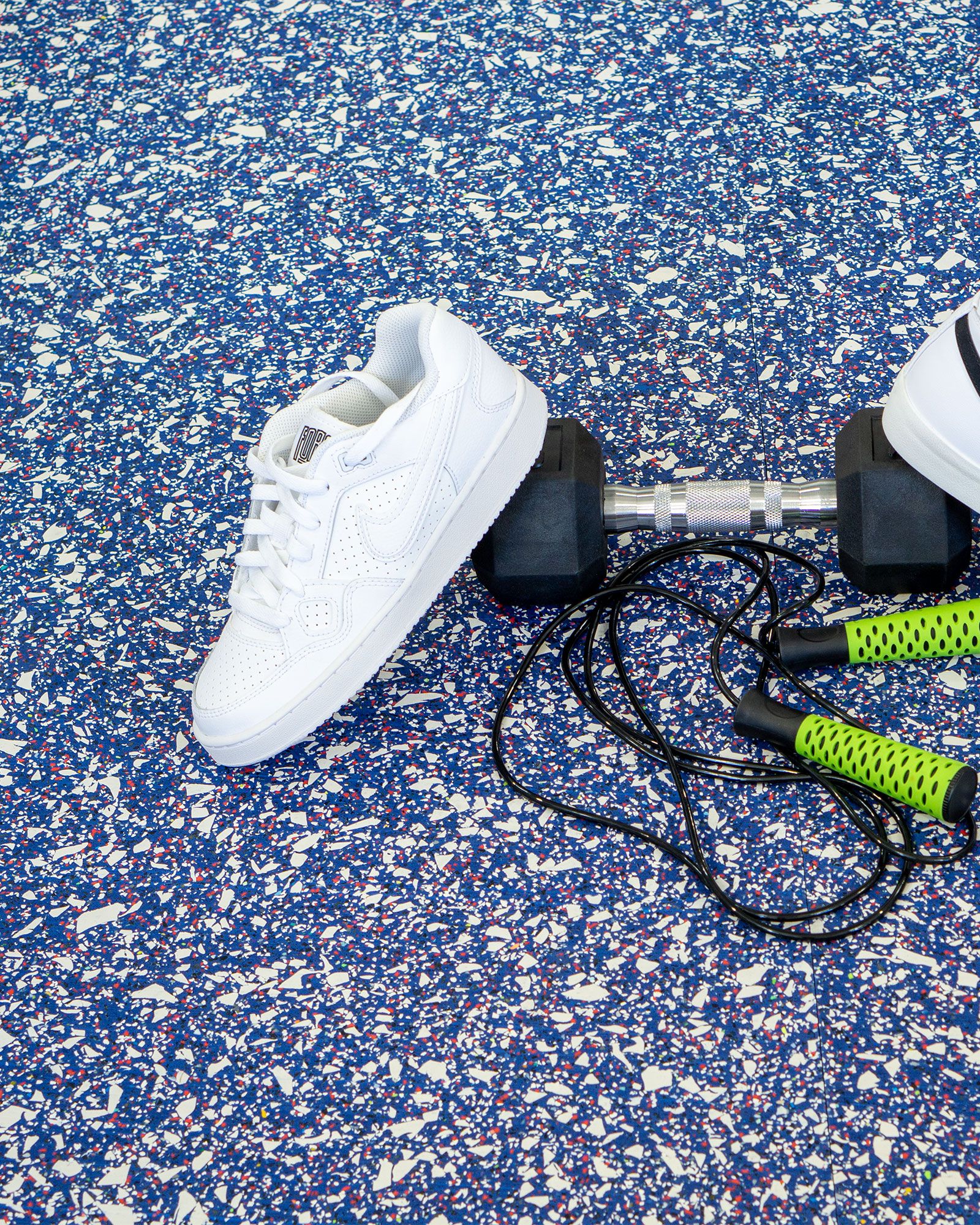 The Hero Rubber + Nike Grind Dunk Kentucky Collection delivers high performance materials with recycled rubber made from post-consumer athletic shoes. It has a 20% construction made from Nike Grind and is crafted without recycled tires or crumb rubber, making it a super clean product. This rubber flooring is approved for areas with free weights when using 8mm thickness or greater. It's available in square tiles and interlocking tiles.