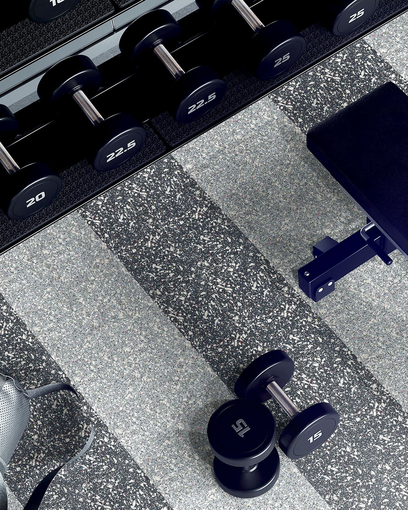 The Hero Rubber + Nike Grind Dunk Panda Collection delivers high performance materials with recycled rubber made from post-consumer athletic shoes. It has a 20% construction made from Nike Grind and is crafted without recycled tires or crumb rubber, making it a super clean product. This rubber flooring is approved for areas with free weights when using 8mm thickness or greater. It's available in square tiles and interlocking tiles.