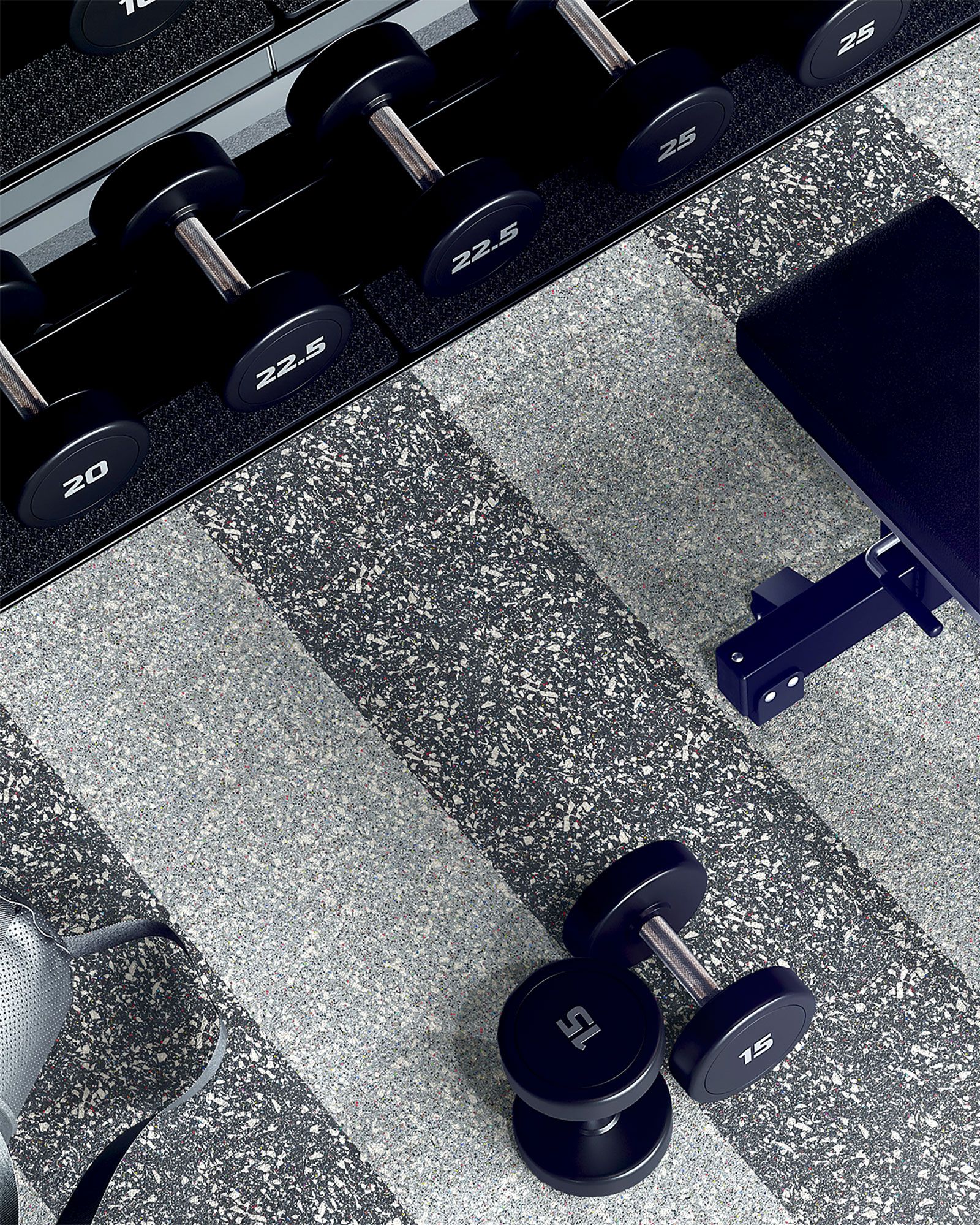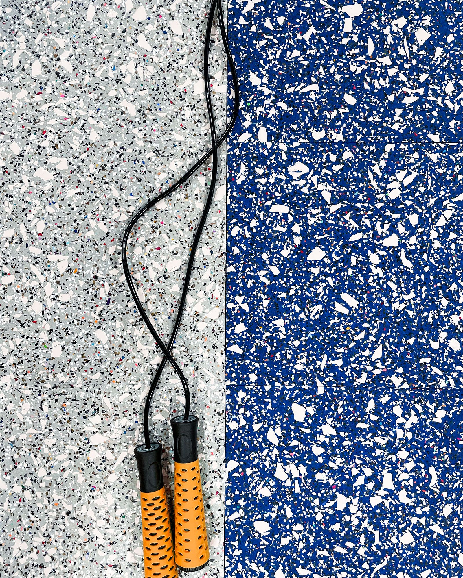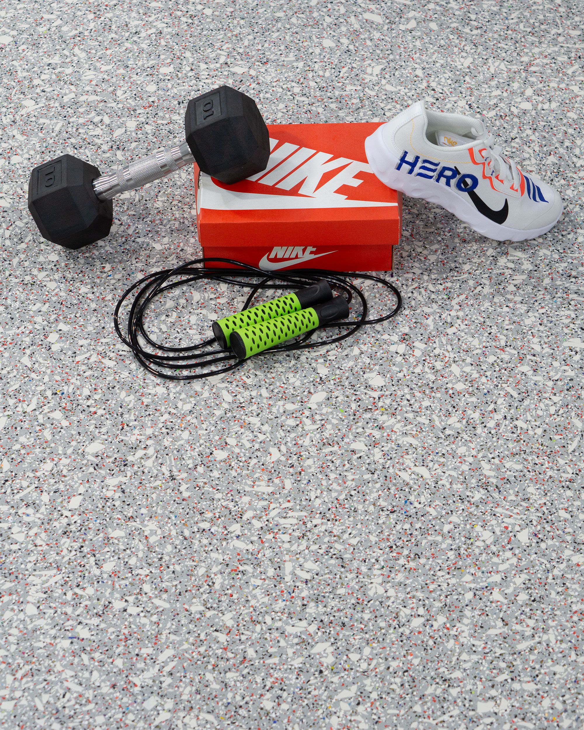 The Hero Rubber + Nike Grind Dunk Wolf Collection delivers high performance materials with recycled rubber made from post-consumer athletic shoes. It has a 20% construction made from Nike Grind and is crafted without recycled tires or crumb rubber, making it a super clean product. This rubber flooring is approved for areas with free weights when using 8mm thickness or greater. It's available in square tiles and interlocking tiles.