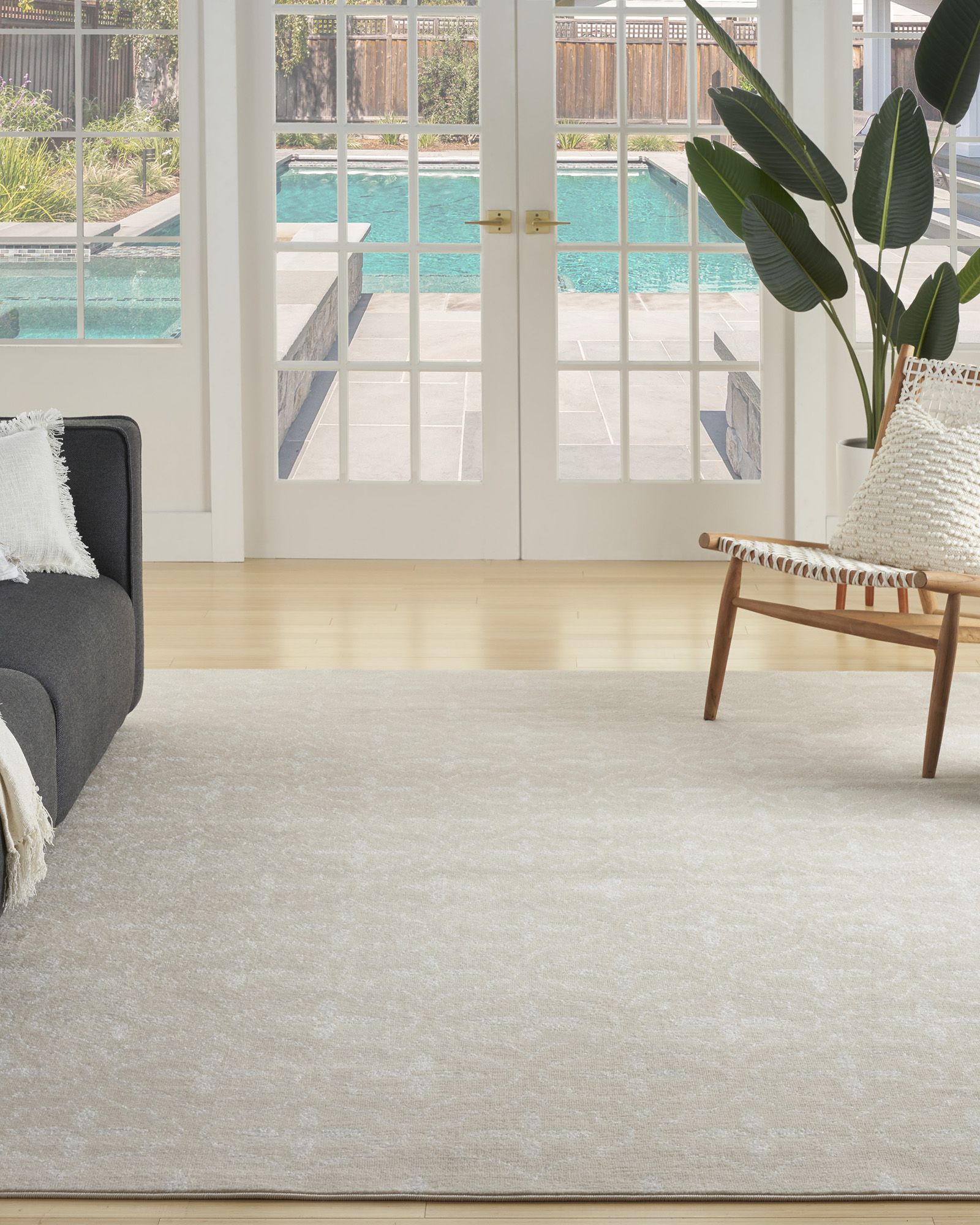 Busy, active lifestyles demand fuss-free decor, and this outdoor rug collection has it all. Nourison Essentials NRE04 Ivory Beige area rugs give you everything you want, and more! These handsome, solid color and patterned area rugs are crafted for rugged performance, but never sacrifice style for function. With a low cut pile, each Essentials rug is designed to withstand heavy traffic, including kids and pets. You'll appreciate the durability, easy care, and soft texture of this contemporary rug collection in a wide range of colors and sizes to fit every indoor and outdoor space. Ideal for your porch, patio, balcony, poolside and deck, or living room, dining room, and other gathering places. 100% polypropylene fibers can be vacuumed, hose-rinsed and air-dried. For even longer life, bring indoors during extreme weather.