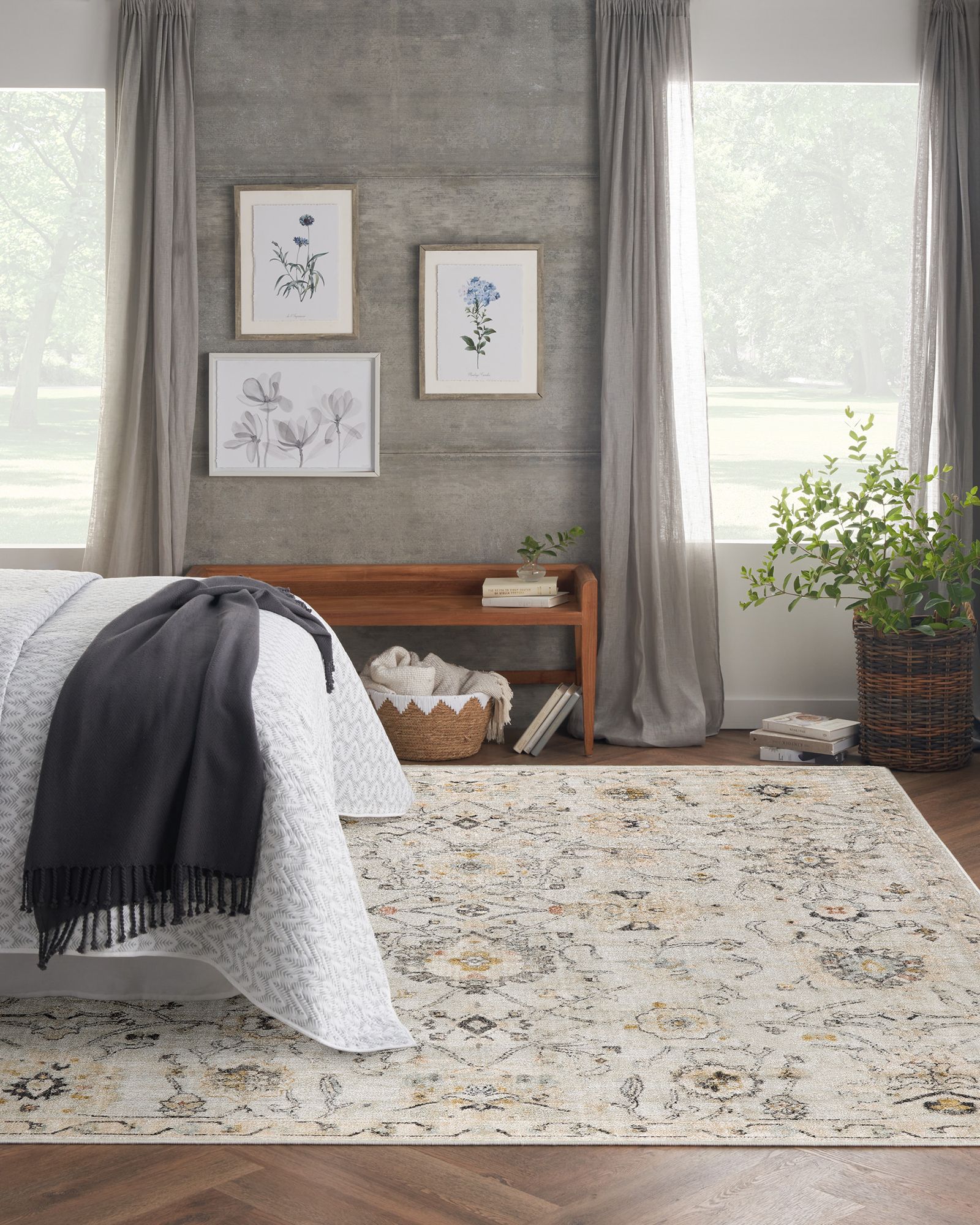 Ground your space in the rich history of the Nourison Oushak Home OUS01 Grey Area Rug Collection. Radiant, Persian-inspired rug designs are on full display in soft colors that complement a variety of styles, including farmhouse, country, boho, and cottagecore decor. Each pattern is precision crafted and finished with a tastefully worn effect that faithfully recreates the look of a treasured handmade heirloom. Machine-made from 100% polypropylene for worry-free maintenance – simply spot clean spills to keep your rug looking fresh. Lay this vintage style rug from the Oushak Home collection in your living room, dining room, kitchen, or bedroom, and step into a world of timeless elegance. The Persian-inspired floral design, passed down through centuries, is replicated in tastefully faded colors that beautifully complement farmhouse, cottagecore, and boho styles of decor. Designed to stand up to everyday living from unexpected juice spills to everyday foot traffic, this polypropylene rug is a stylish and functional addition to busy homes.