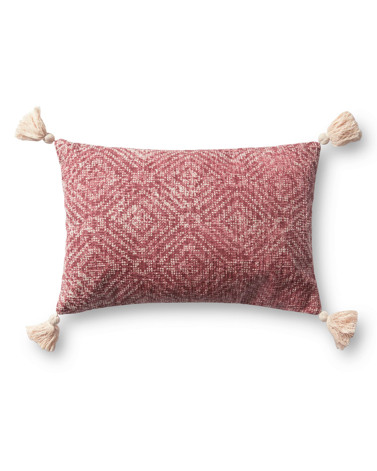 | Description | The Loloi P0621 Red 13"x21" Lumbar Pillow features a woven geometric design in a tonal red color. It has tassels at the corners for added interest. Closure: Hidden Flap, Zipper: Antique Bronze Finish With Loloi Logo, Edge Treatment: Corner Tassels, Back Color: Natural Canvas / Duck Cloth |