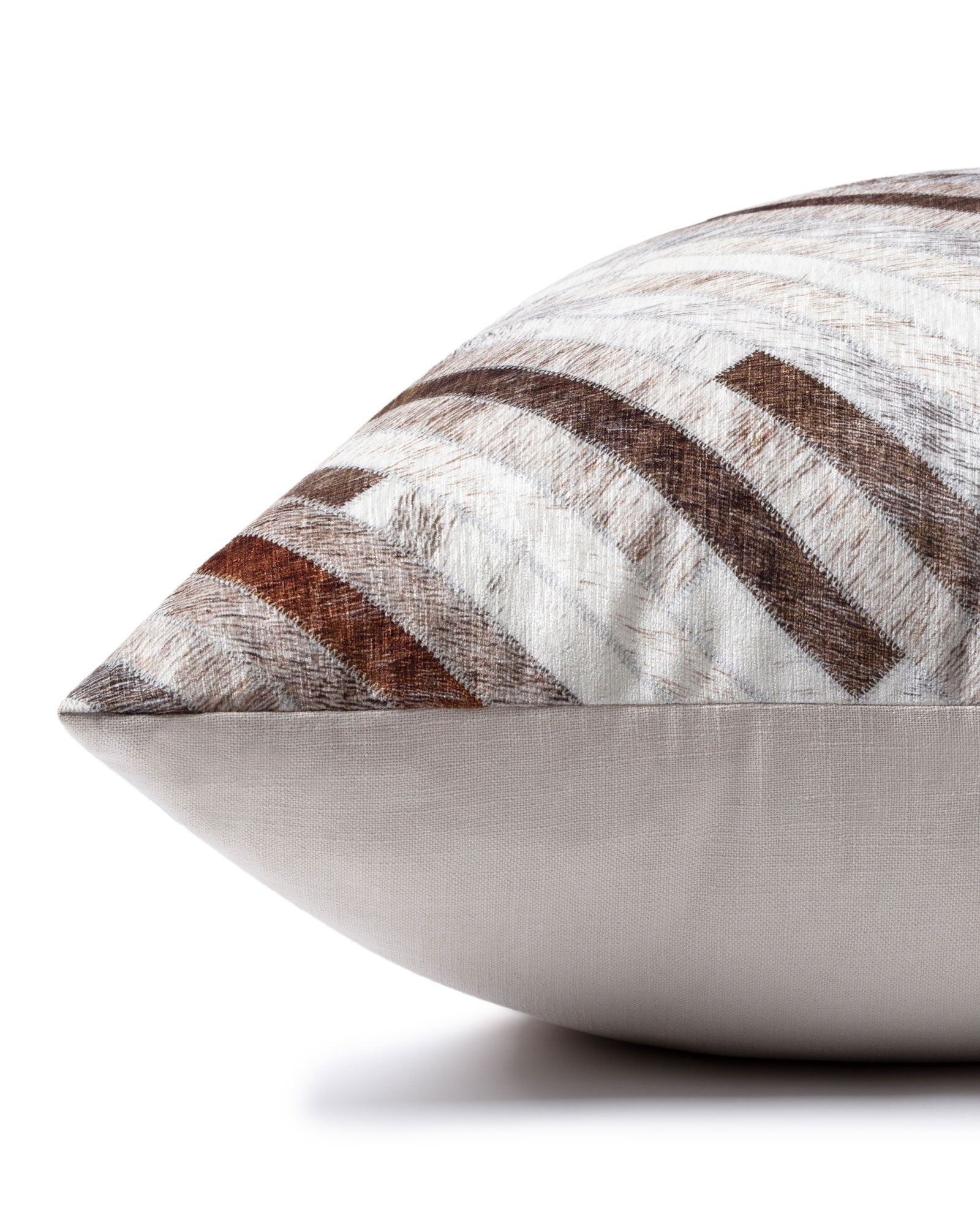 | Description | The Loloi P0900 Grey/Multi 36" Pillow features an animal hide textured feel with a striped geometric design at the front and a solid backing. |