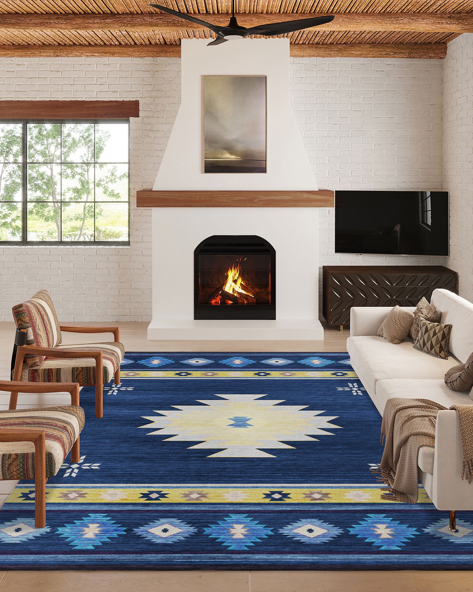 | Description | The Dalyn Phoenix PH4 Navy Area Rug Collection offers a casual, southwest style featuring geometric Aztec patterns. It's UV stabilized for indoor and covered outdoor use. The 100% polyester flat woven construction has an incorporated non-skid backing. Crafted in the USA. |