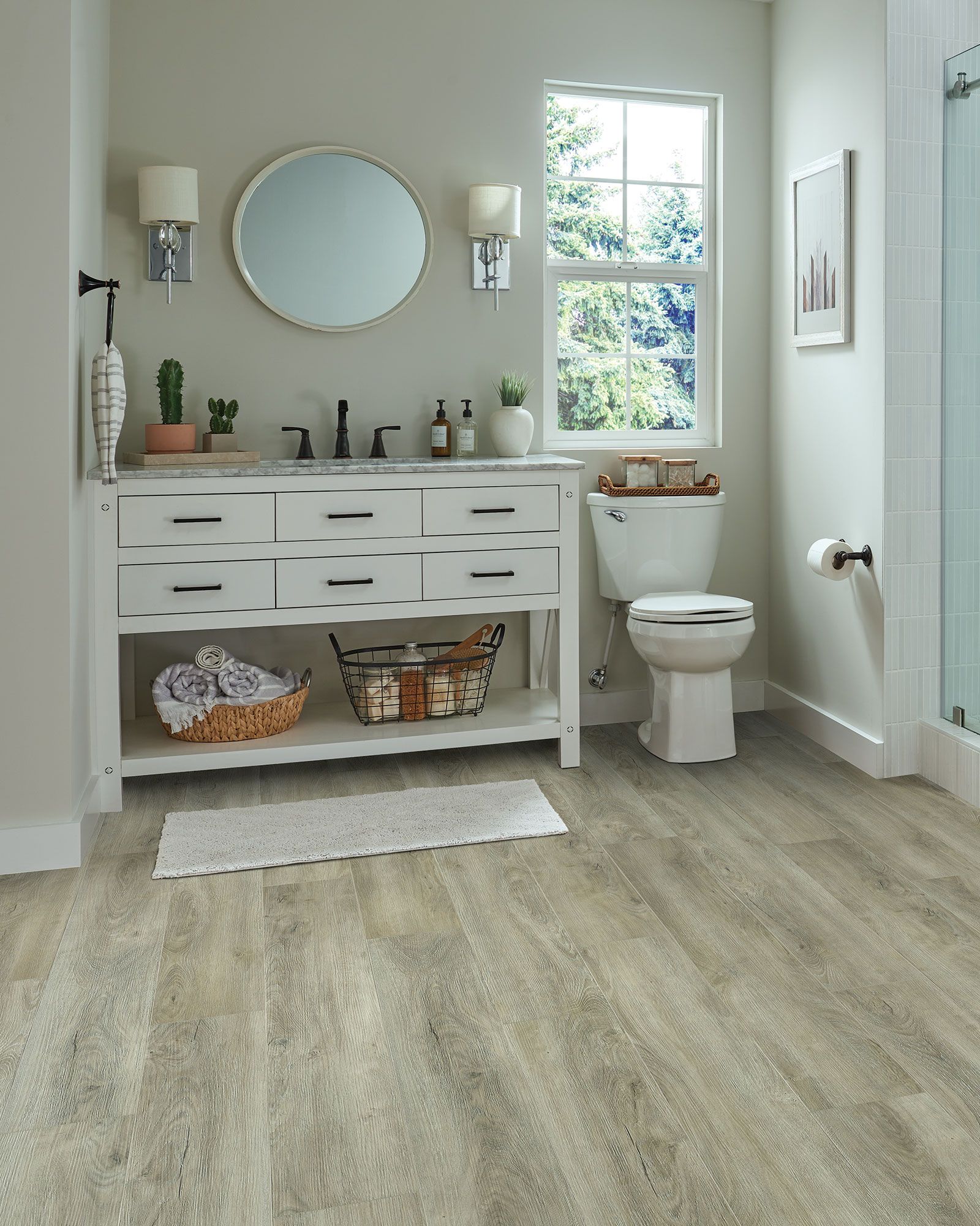 The Robbins Pro-Tekt Classic Pro Nuanced Gray 7"x60" Waterproof Vinyl Flooring Collection delivers elevated design with completely worry-free performance. This 100% waterproof luxury vinyl flooring features a high-density Pro-Tekt core engineered without air pockets for superior hardness, moisture protection, and long-term durability. Designed for busy households, it is scratch and dent resistant, kid- and pet-friendly, and built to handle high-traffic areas with exceptional impact resistance and dimensional stability. The precision-milled locking system ensures fast, secure installation with no acclimation required. Suitable for installation on any level, including sunrooms and spaces with direct sunlight, PRO-TEKT rigid core flooring performs in high temperatures without crowning, cupping, or delamination. Stylish, durable, and easy to maintain, it is the perfect waterproof flooring solution for modern living.