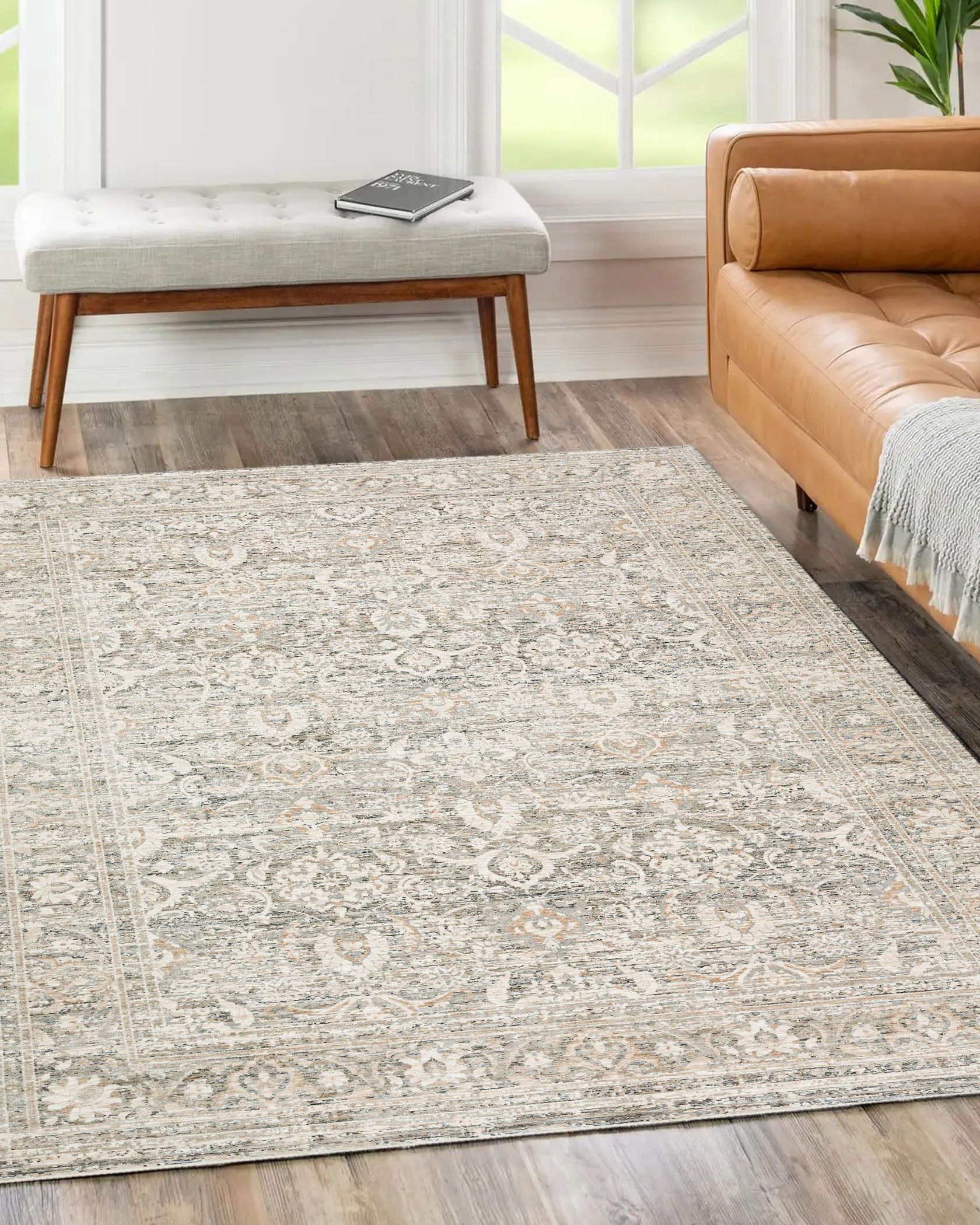 Introducing the Dalyn Regal RG1 Putty Area Rug Collection, where classic, traditional styling meets exquisite attention to detail. These rugs are meticulously space dyed, resulting in stunning depth and shading that adds dimension to any room. With a super tight construction of polyester and a cotton foundation featuring short fringe, these rugs are built to last. The polyester pile ensures both softness and durability. Crafted with precision through power weaving in Turkey, the Regal collection epitomizes quality and craftsmanship.