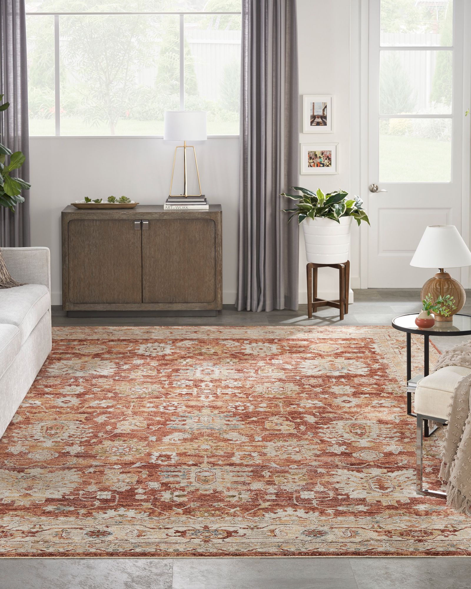 | Description | Enhance any space with the vintage-inspired designs of the Sahar SHR02 Rust Collection by Nourison. These traditional Persian rugs feature ornate, detailed patterns that are finished with purposeful distressing that adds a classic feel. Sahar is available in an array of sizes – from runner rugs to large rugs – to suit your entryway, hallway, living room, dining room, kitchen, or bedroom. Machine-made from durable polyester fibers that are soft to the touch and comfortable underfoot. |