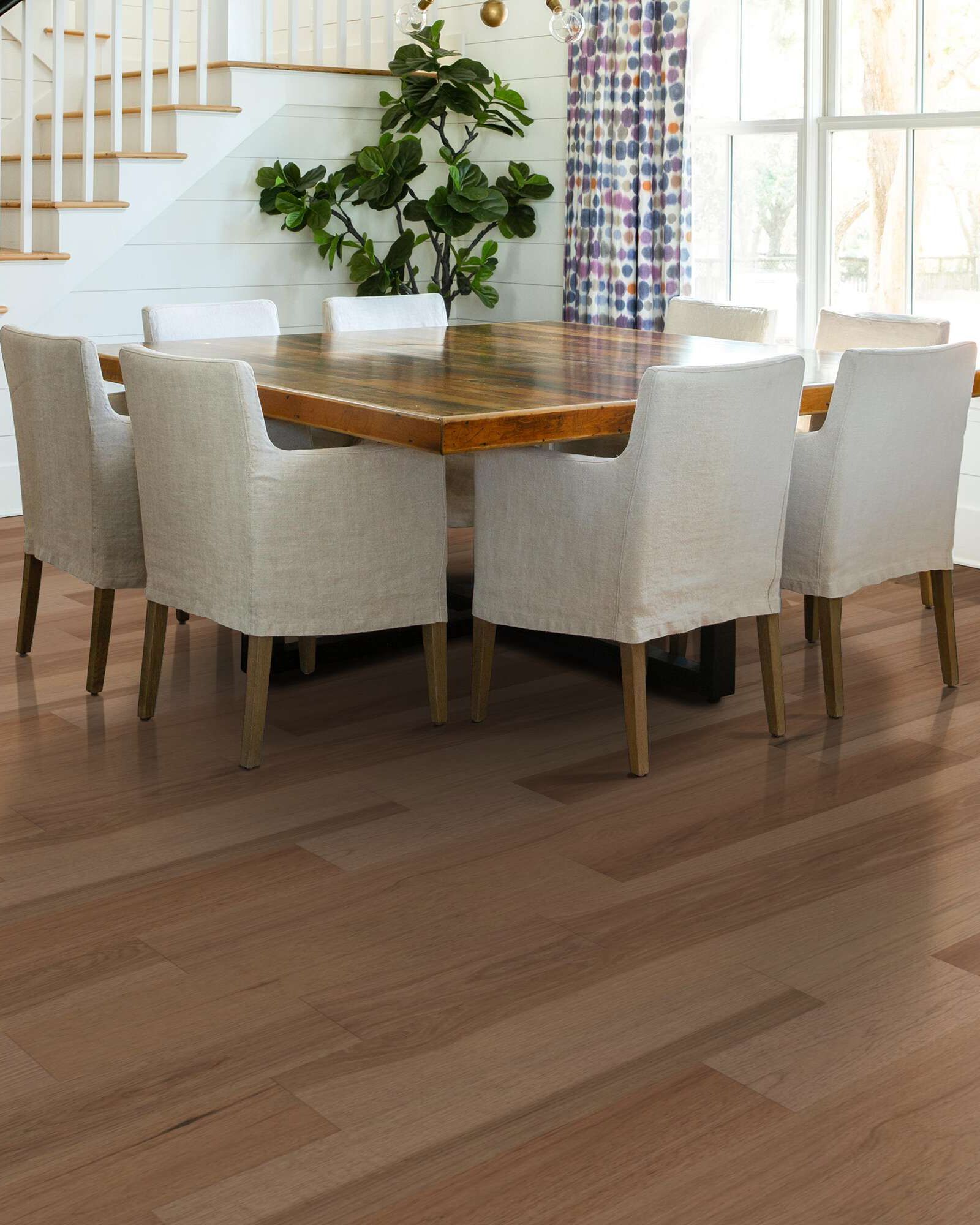 | Description | Water on wood? No worries. The Shaw SW740 Exploration Hickory Inlet Collection offers Repel Splash-Proof hardwood that features an advanced water-resistant barrier that REPELS moisture the instant it strikes the surface, protecting your floors from everyday use. Each plank is finished with ScufResist Platinum Technology which protects your new flooring from household scuffing. It can be installed at all surface levels using a variety of installation methods such as nail, staple, glue or floating. Finished with a Lifetime Splash Proof Residential Warranty. |