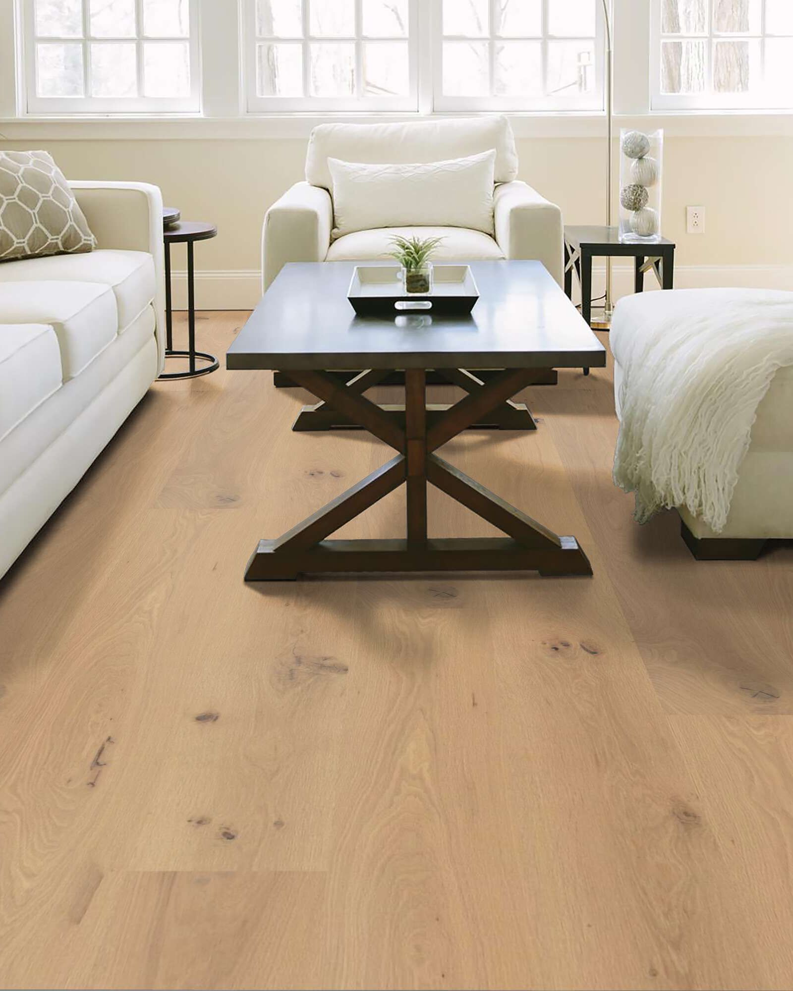| Description | The Shaw SW754 Expressions 9.5" Harmony Collection features white oak engineered hardwood with a wide width plank. Part of the Gallery Collection of premium hardwood, Expressions is hand selected by design experts to bring the natural artistry of hardwood into your home. The clean look and understated finishes let the beauty of the wood shine through for a timeless look that ages gracefully. It has a wirebrushed surface texture and high variation. It can be installed at all surface levels using a variety of installation methods such as nail, staple, glue or floating. Finished with a Lifetime Residential Warranty. |