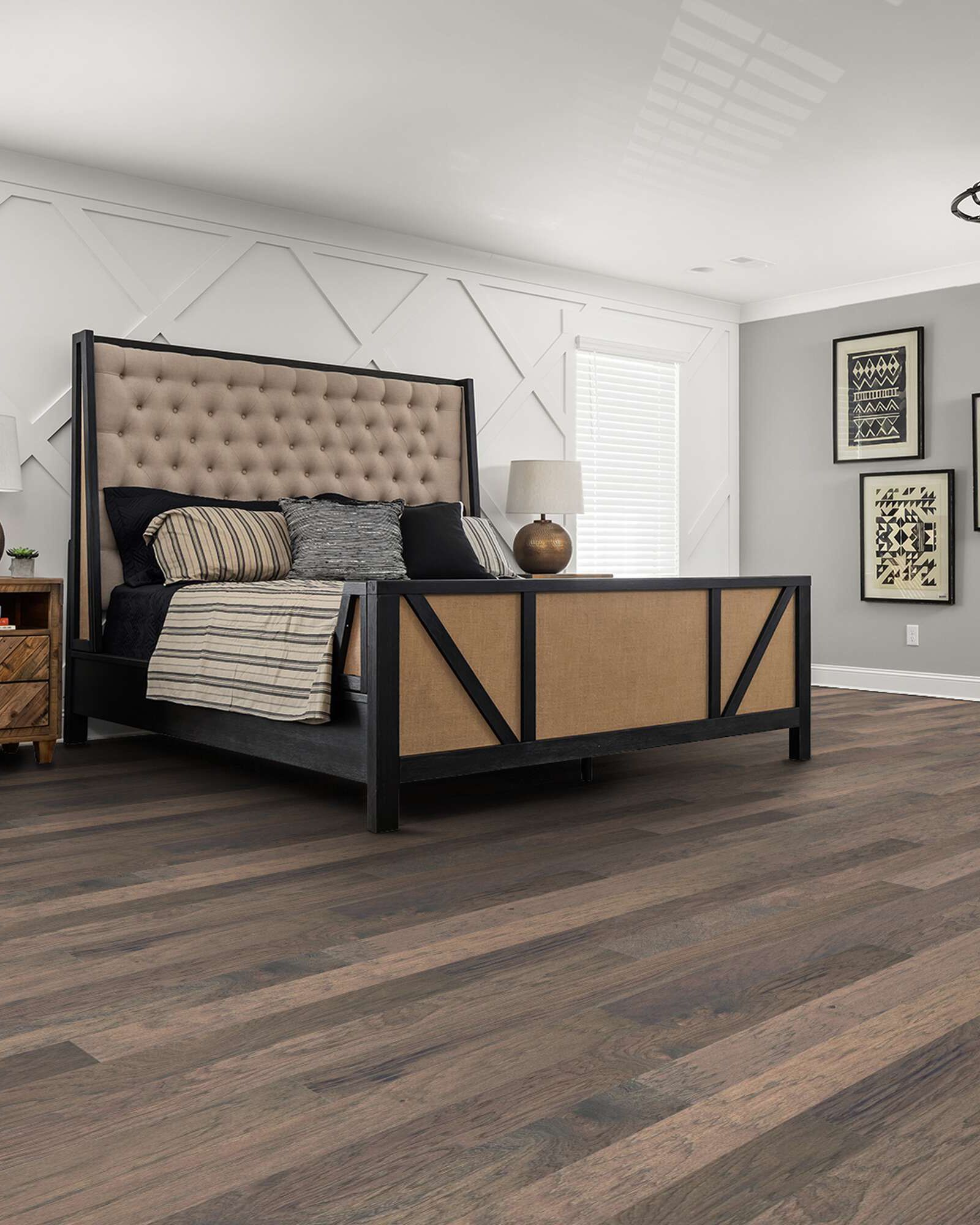 | Description | Subtle wirebrushing lets the natural beauty of hickory shine through with Shaw SW711 High Plains 5 Nomadic Collection. Part of the REPEL Collection with Splash-Proof Technology that guards against splashes and spills 2x better than untreated hardwood. It also features superior dent resistance and ScufResist Platinum finish to guard against scuffs. It can be installed at all surface levels using a variety of installation methods such as nail, staple, glue or floating. Finished with a Lifetime Splash Proof Warranty. |