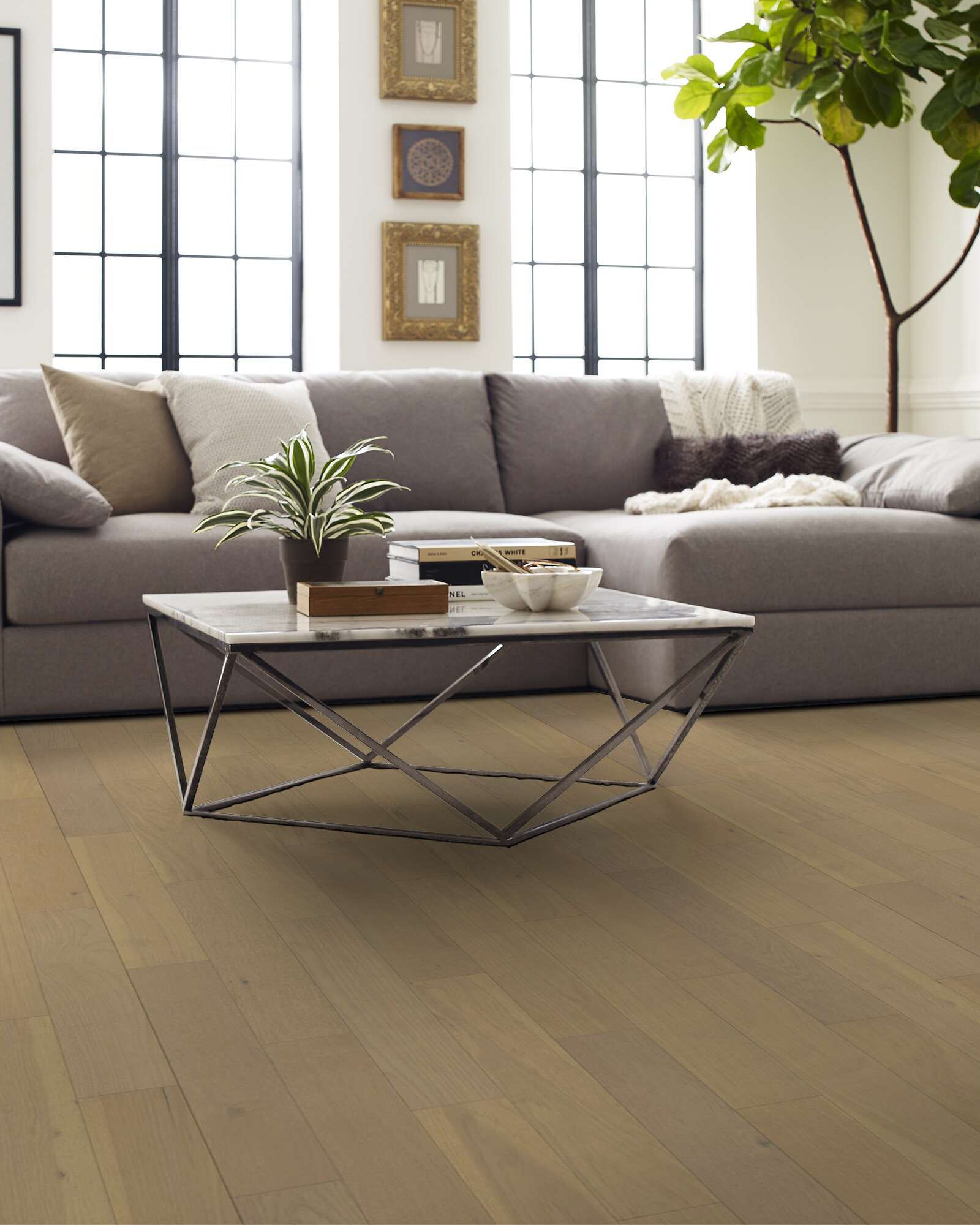 The Shaw 215SA Lexington Ave Oak Carnegie Collection features a wirebrushed engineered white oak hardwood with high variation and an UV Aluminum Oxide finish. It can be installed at all surface levels using a glue method. Finished with a 50 Year Residential Warranty.