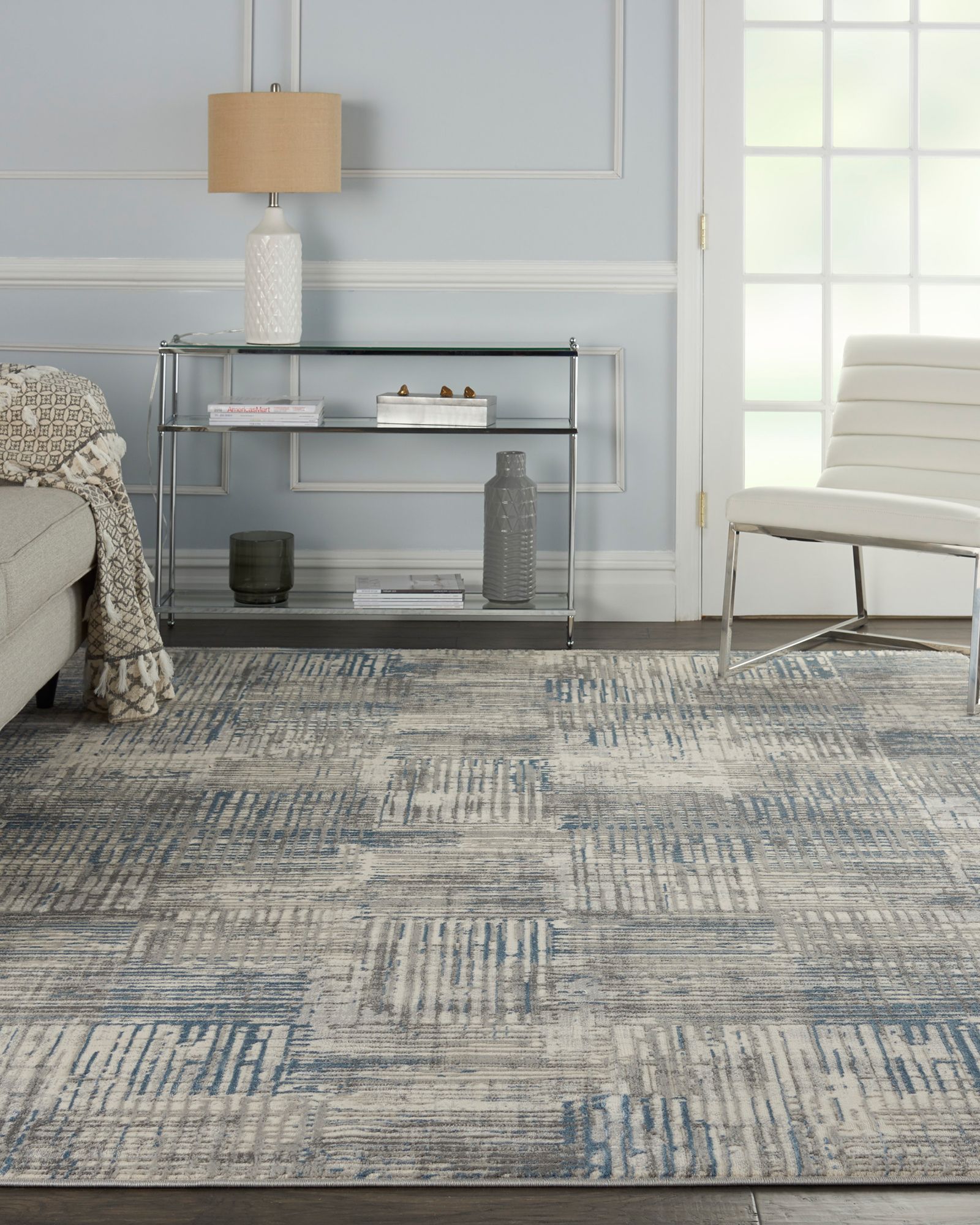 | Description | Sumptuous shadings of cool neutral tones in captivating abstract designs define the appeal of the Solace SLA03 Ivory/Grey/Blue Area Rug Collection. A high-low pile offers inviting texture, while the erased patterns have a fashion-forward, distressed look. Created for easy living and the casual lifestyle, these contemporary, borderless area rugs work beautifully throughout the home, from living rooms and dining rooms to family rooms, bedroom and study. Power loomed in low-shed polyblend fibers. |