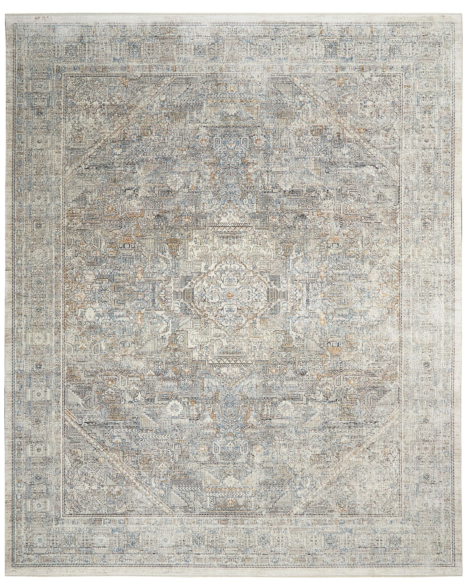 | Description | Harkening back to old-world, Persian opulence from centuries ago, the new Starry Nights STN02 Cream Grey collection features traditional area rugs with vintage allure. Classic, framed patterns with intricately carved designs showcase elegant color pairings, faded to resemble a priceless family heirloom. A subtle surface shimmer brings the rug to life. Silky to the touch, soft under foot, and an exquisite addition to your home. Keep your home looking its best with a family-friendly Starry Nights rug and Nouri-Guard protection! |