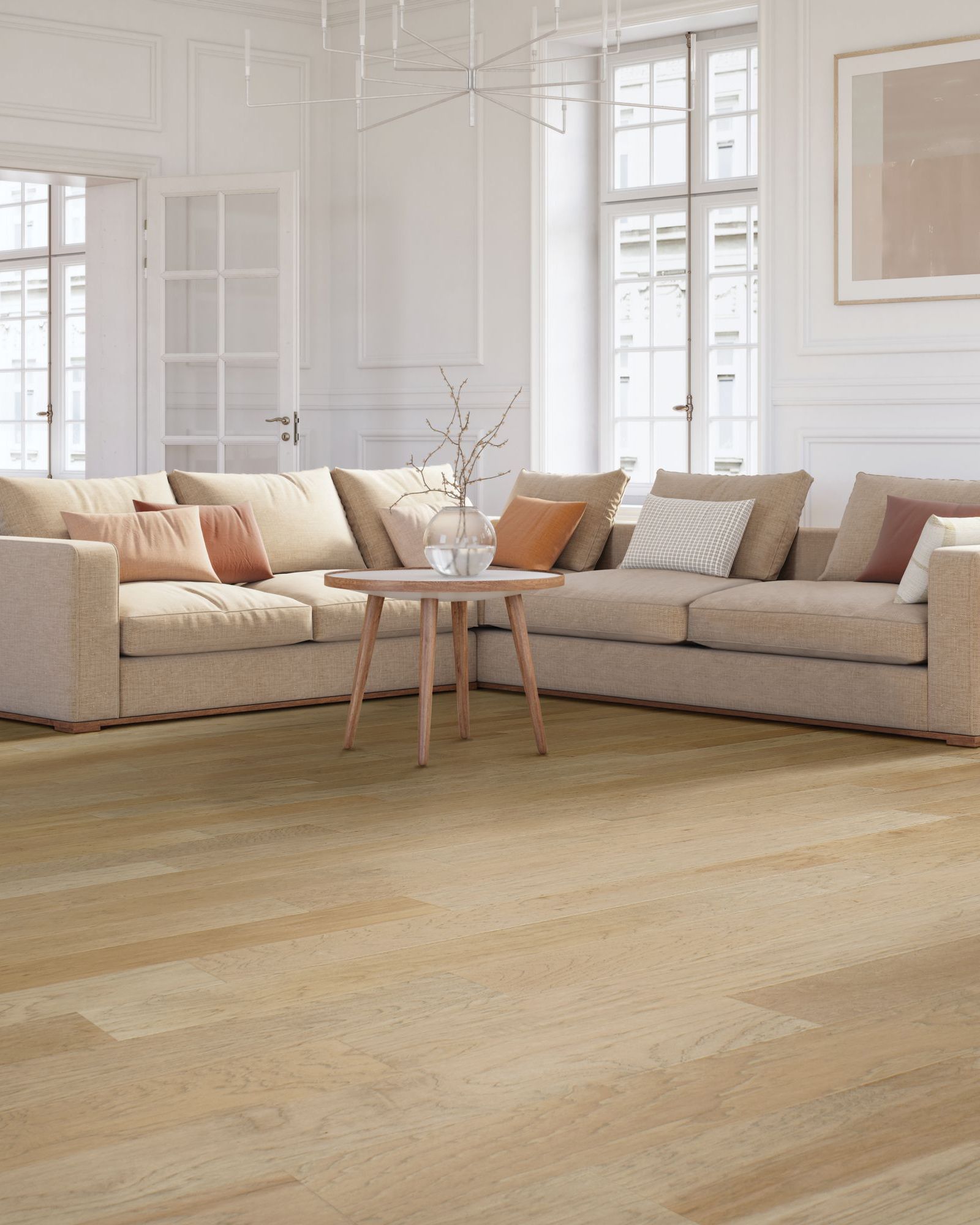 The Mohawk TecWood Essentials Whistlowe Burlap Hickory 6.5" Hardwood flooring combines timeless beauty with durability. Featuring 6.5in wide planks in random lengths up to 48in, this flooring is crafted with a 3/8in thickness and a strong 1.75mm rotary-cut veneer. Its pillowed and rolled edges create a smooth, refined look, while the aluminum oxide finish ensures long-lasting protection. With high hardness, low photosensitivity, and high shade variation, Whistlowe offers both style and resilience. Designed for versatile installation over wood or concrete subfloors using staple, glue, or float methods, it’s backed by a 25-year limited finish warranty and a 5-year light commercial warranty, making it a dependable choice for any space.